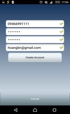 Mở ứng dụng ngay sau khi đã cài đặt xong. Tại màn hình chọn "Tạo tài khoản trên sTelPhone" để thiết lập tài khoản