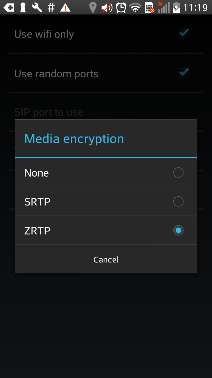 Vào Settings --> Network --> Media Encryption --> Lựa chọn bảo mật tín hiệu thoại theo giao thức SRTP hoặc ZRTP
