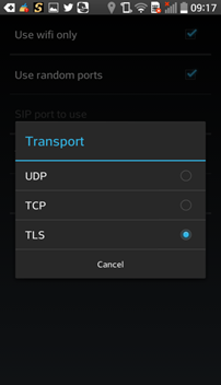 Vào Settings --> Network --> Transport --> Lựa chọn bảo mật tín hiệu điều khiển theo giao thức TLS.