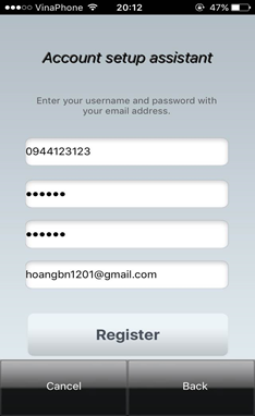 Điền các thông tin như user name, password, domain , email để đăng ký tài khoản