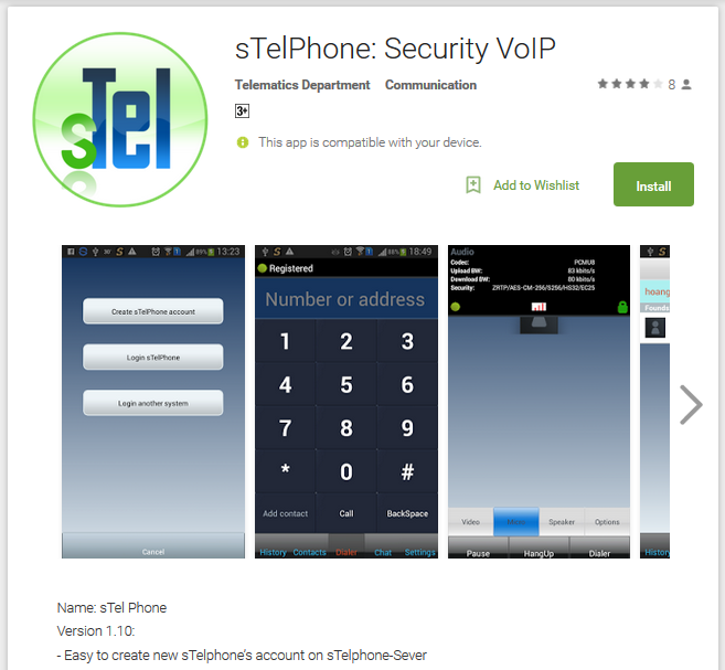 Vào Google Play trên thiết bị Android của bạn tìm kiếm và tải về ứng dụng sTelPhone hoặc truy xuất tới: