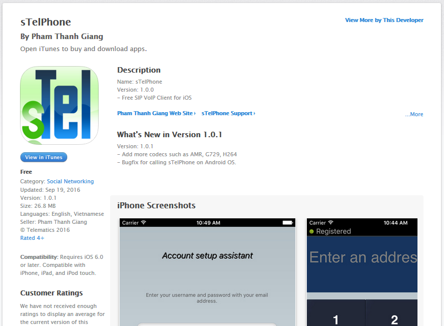 Vào Apple Store trên thiết bị iPhone của bạn tìm kiếm và tải về ứng dụng sTelPhone hoặc truy xuất tới: